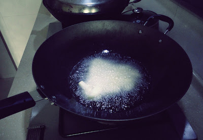 Frytki były pyszne i, mam nadzieję zdrowsze, niż te fastfoodowe (dzięki podwójnemu smażeniu nie tak bardzo nasiąknięte tłuszczem, bez tajemniczych substancji na wierzchu, które przyspieszają proces produkcji i smażone na dobrym oleju rzepakowym, chyba najbardziej popularnym tu, w Chinach). Okazały się też bardzo szybkie do przygotowania, głównie dzięki prostemu przepisowi z Kwestii Smaku, który cytuję poniżej, głowie niewypełnionej myślami oprócz tych o samych frytkach, swojskiemu zapachowi smażonych ziemniaków, który motywował do działania i niezastąpionemu wokowi, z którym wszystko jest łatwiejsze.